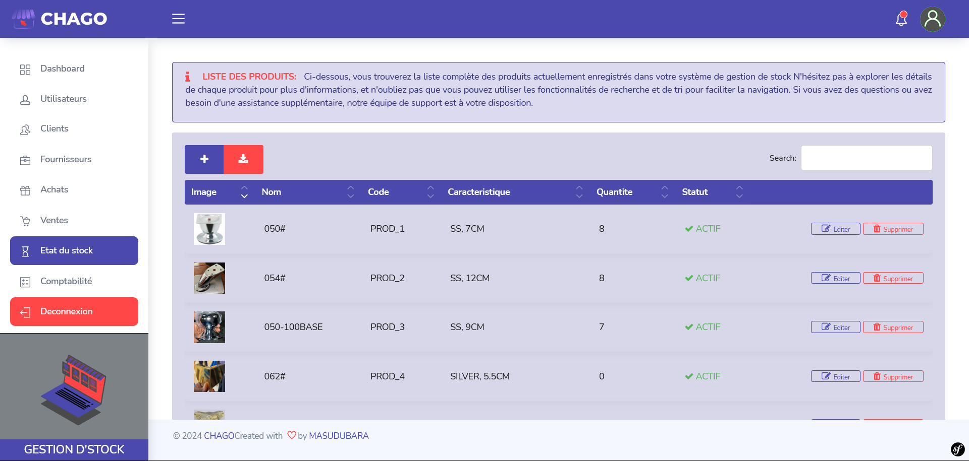 Bienvenue sur CHAGO, votre compagnon ultime pour la gestion efficace de stock ! Avec une interface conviviale, des fonctionnalités puissantes et une flexibilité remarquable, CHAGO vous permet de prendre le contrôle total de votre inventaire en un rien de temps.